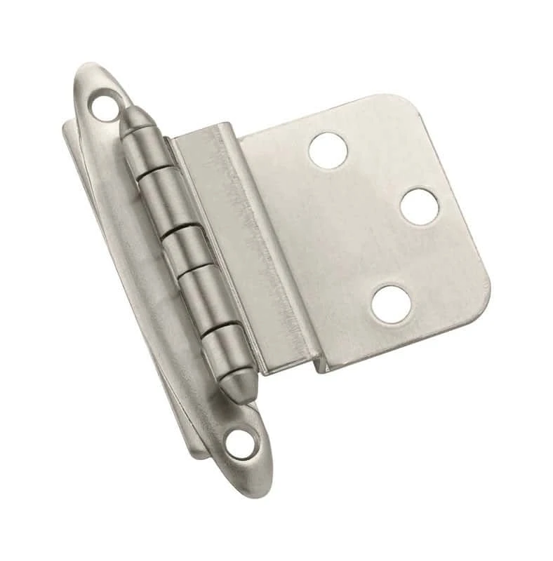 The Amerock 10PK3417G10 3/8in(10mm) Inset Hinge is finished in satin nickel and comes in a pack of 10. Every Amerock functional hardware series is tested for durability in conditions exceeding all KCMA certification requirements and BHMS standards for cycle life, strength and finish quality. Heavy-duty steel construction. Reliable, self-closing power of dual compression springs. The classic Satin Nickel finish provides a sleek, lightly brushed, warm grey metallic look. Amerock offers a complete line of decorative and functional cabinet hardware, bath hardware,hook and rail and wall plates. Amerock’s award-winning decorative and functional hardware solutions have built the company’s reputation for chic design accessories that inspire homeowners to express their personal style. Available in a variety of finishes and styles, Amerock offers high quality designs at affordable prices. Always creating. Always timeless. Always Amerock. Uncompromised quality at an unbeatable price Easy to use High quality material