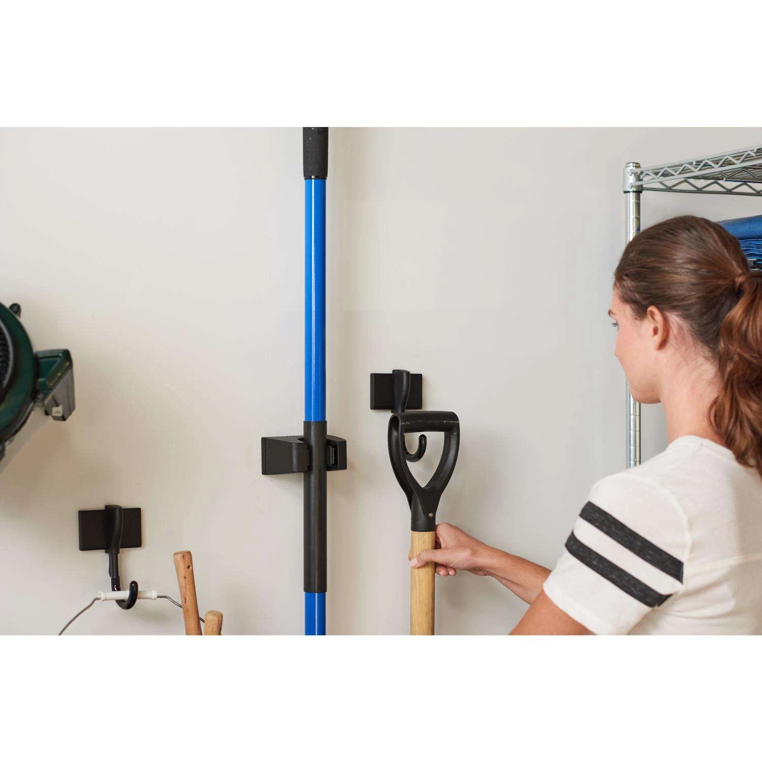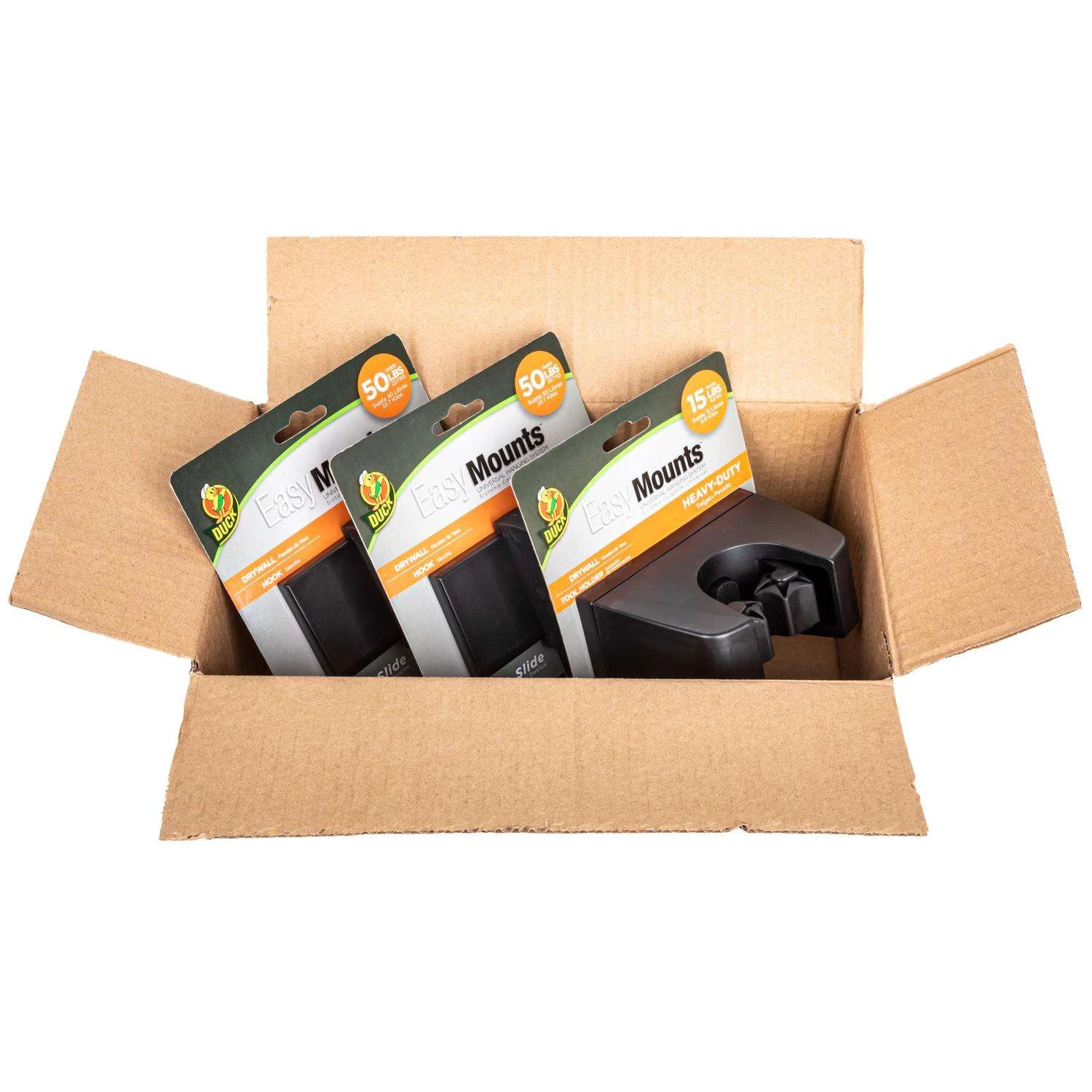 From leaf blowers, to camp chairs, to brooms and more, Duck EasyMounts heavy-duty garage kit is the perfect organizational and tool-free solution for hanging heavy household and garage items. This Duck Easy Mounts kit features easy to install mounting systems. EasyMounts heavy-duty drywall hooks are the tool-free solution for hanging heavy household and garage items holding up to 50 lb. These hooks are perfect for hanging a variety of tools and garage equipment during your next home organization project. Easy Mounts heavy-duty drywall tool holder is the perfect solution for hanging shovels, brooms and more. The holder grips handles up to 1.5 inches thick and supports up to 15 lb. of weight. The universal hanging system allows you to easily switch to another EasyMounts heavy-duty solution in seconds, without moving the base. No sweat, no damage, just pure flexibility. Plus, the entire heavy-duty system offers permanent hold guaranteed to withstand the test of time in a variety of climates, thanks to the adhesive and pin installation technology. Tool-free and easy to install, EasyMounts ets you to ditch the toolbox and get your mind out of the clutter. Install in drywall in minutes or in wood surfaces with screws not included and get organizing Each heavy-duty hook securely holds up to 50 lb. of weight, which is equal to about six gallons of water The heavy-duty tool holder adjusts to the thickness of the tool, securely gripping handles up to 1.5 inch
