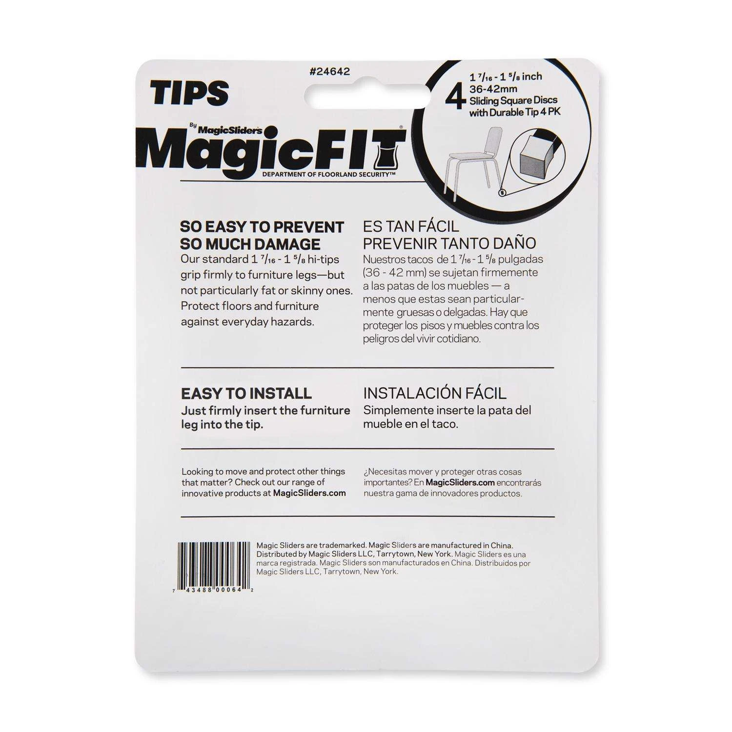 Magic Fit slide everything as if it had wheels. The new approach to floor protection with silicone grip on furniture leg. Anti-slip design for all surfaces hardwood, tile, carpet and vinyl. Noise-eliminating Redefining durability Easily fits on any leg shape