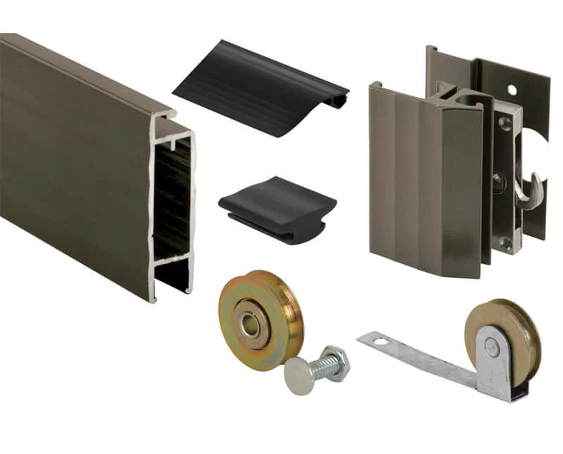 Kits are shipped KD (knocked down, or un-assembled) with square-cut ends on extruded aluminum frame pieces, and must be cut at 45 deg. angles in the field. Fluted frame pieces are pre-punched for handle and roller installation, complete with extruded aluminum interlocking corners. Kit includes vinyl bug seal, steel ball-bearing rollers, locking handles and hardware required for complete assembly of door. For use in universal applications; designed to open with one finger. “Bronze Paint Finish, Electrostatic coating applied to insure the door looks good for years to come “1-3/4 inch wide Extruded Aluminum, .050 Thick Frame Square Cut at 49 x 81 inches “The door’s frame rails need to be miter (angle) cut to size for an exact fit to your opening “Two (2) each 1 inch steel spring tension rollers at the top with two (2) each 1-1/4 steel rollers for the bottom “Internal Mortise Latch with Color Matched Inside and Outside Pull Assembly “Latch assembly includes the latch keeper and screws for mounting to door jamb “Latch assembly includes the latch keeper and screws for mounting to door jamb “Extruded vinyl bug seal with flap and tear-off strips “Includes four (4) each extruded aluminum spur corners that provide tight, secure fit with minimal flexing “Kit does NOT include the screen fabric or spline. Order fabric and .200 spline separately.