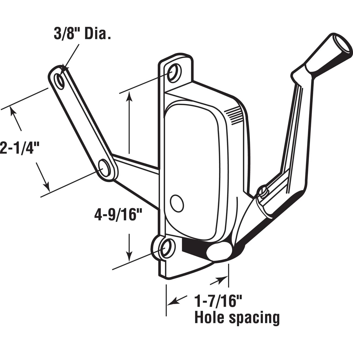 This casement window operator is a right-handed, bronze, surface mount body type with four mounting holes in the top of the body and mounts directly onto the sill. It has a 9 in. steel arm with a round disc on the tip The disc slides in the Prime-Line part H 3595 casement track located on the bottom edge of the casement window. It is worm gear driven by a 3/8 in. crank spindle. The matching crank handle that fits onto the crank spindle and installation screws are included. Constructed of diecast and steel material Comes in a neutral gray color to blend with existing hardware, in a corrosion resistant, baked-on enamel finish Designed for use with awning windows manufactured by various manufacturers Features an L-shaped mounting hole pattern to provide greater stability when cranking Easy to install with only a few simple tools For further dimensional and specification information, please see the line drawing A Phillips head screwdriver is required for Installation For further dimensional information, please see the line drawing