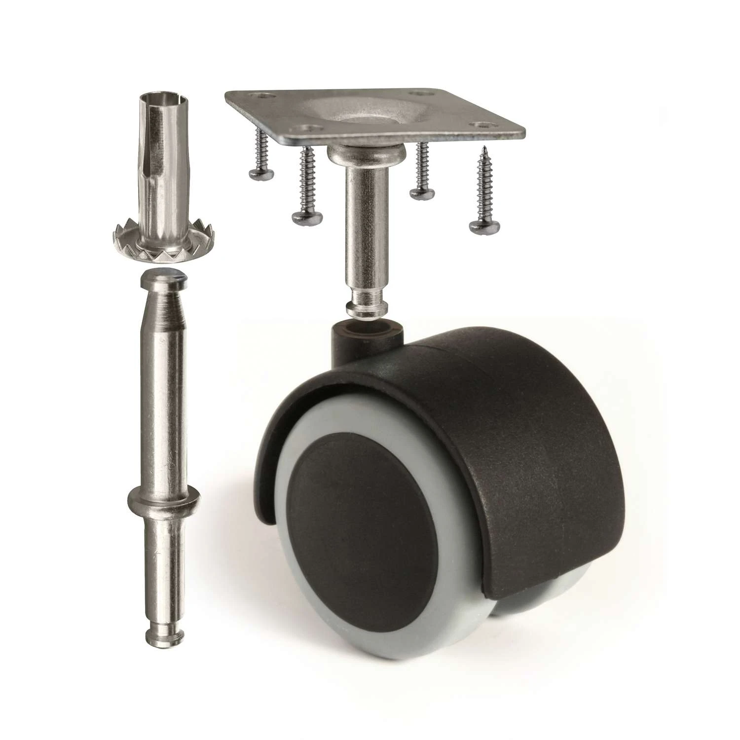 Ideal for chairs, tables, racks and more. High impact black polypropylene dust cover 5/16″ dia. x 1-1/2″ long tempered steel stem with 3/8 grip neck sleeve Glides quietly Cleans easily